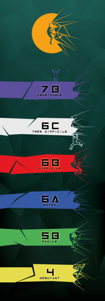 • 7B – Abominable (violet) : pour les grimpeurs expérimentés en quête de défis extrêmes.